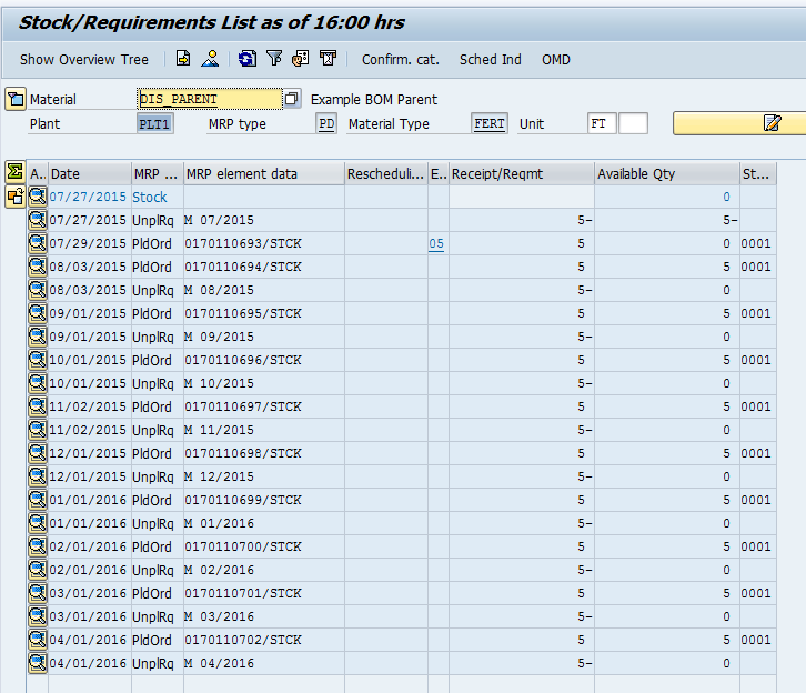- That the Parent Material (DIS_PARENT) has requirements/planned orders going out through 04/2016.