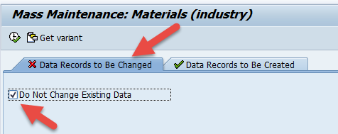 - Then select “Data Records to Be Created” tab – this is where MMSC_MASS starts. Note the “Data Records to Be Changed” tab should have red “X”.